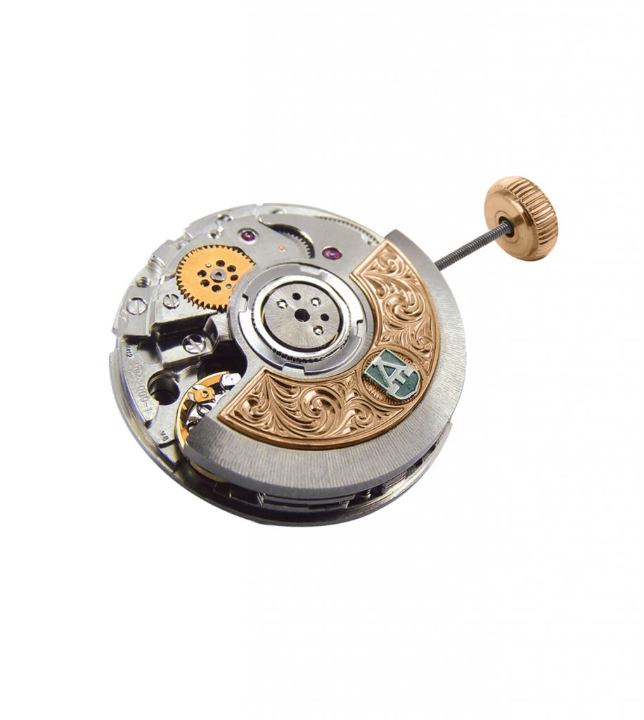 The watch is equipped with a Swiss automatic winding movement cal. 2000-1 ETA. A hand-engraved silver or rose gold element on the rotor imparts something very romantic.