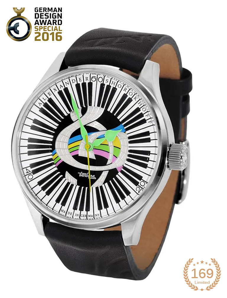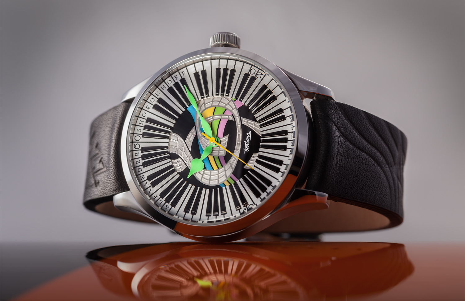 βI am fascinated with Barbaraβs avant-garde music. I created a watch with organ keys surrounding a clef that virtually breaks the mold on the colorful and vibrant background. The avant-garde design corresponds to the work of this unique artistβ, is how Shorokhov described his conception at the presentation of the watch at the International Watch and Jewelry Show βBaselworld 2015β.