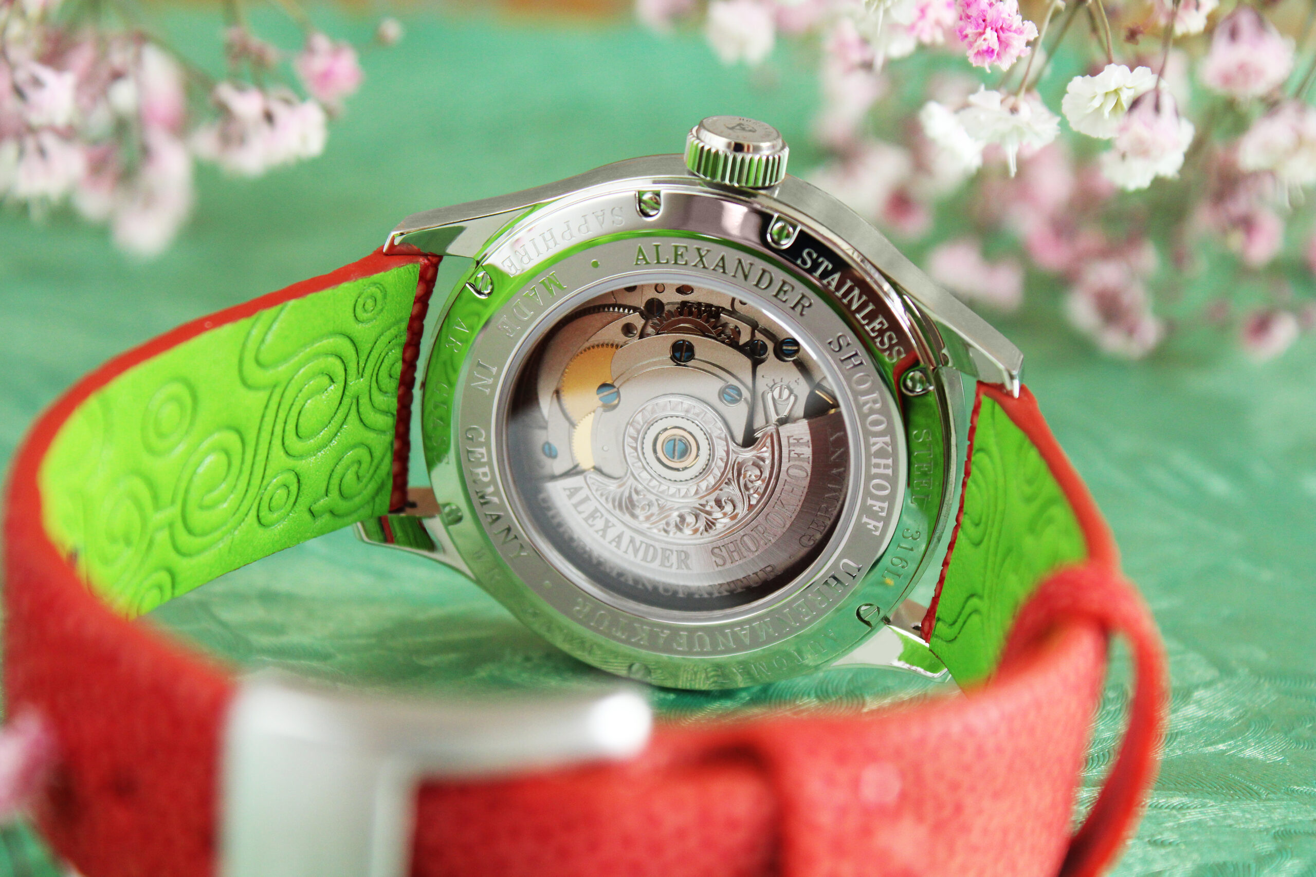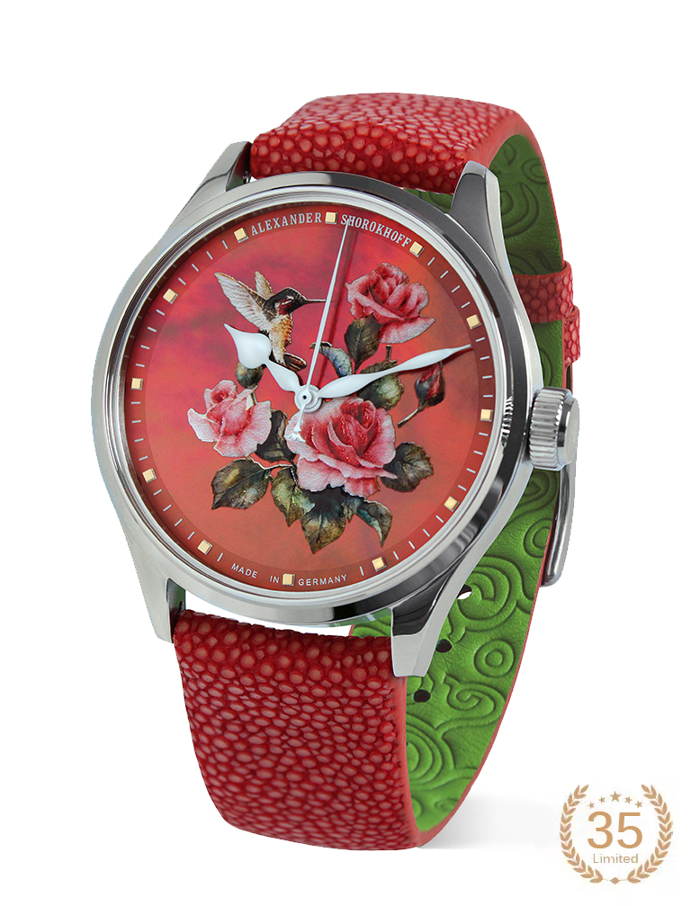 But not only is the picture breathtaking, the unconventional red mother-of-pearl color also plays a central role. It captures the play of colors and serves as a canvas for the 3D print, allowing the flowers to shine with unprecedented brilliance. This unique creation is limited to a strictly limited edition of 35 pieces.