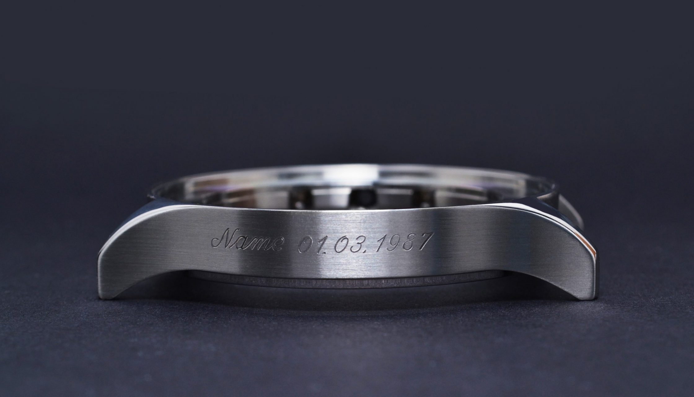 Personalised engraving with up to 10 characters on the middle part of the case (letters, numbers, punctuation marks).
